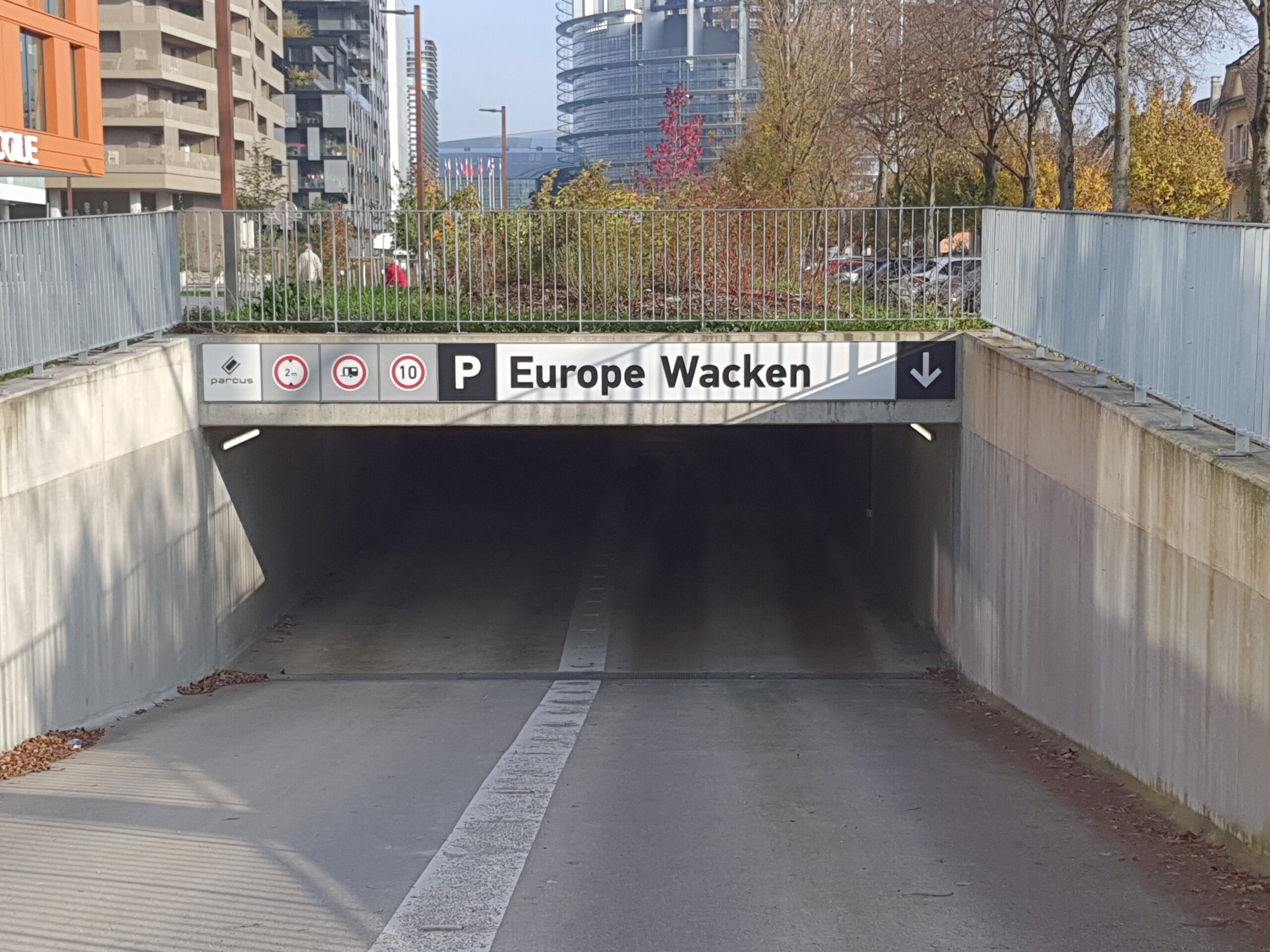 Parking public de 315 places, situé dans le quartier d’affaires Wacken en plein développement.